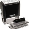 Attached flip-open lid keeps surfaces clean and prolongs stamp life